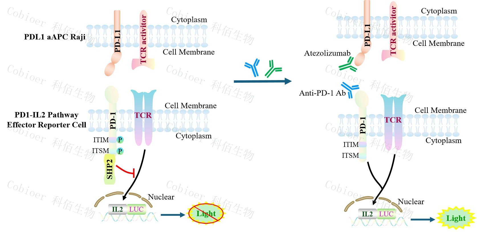 PD1-IL2 Pathway Effector Reporter Cell 報告基因藥靶模型很好的模擬了體內 PD1&IL2 的信號轉導過(guò)程,原理見(jiàn)下圖所示。![]() Figure 1. PD1-IL2 Pathway Effector Reporter Cell 細胞模型原理圖 |