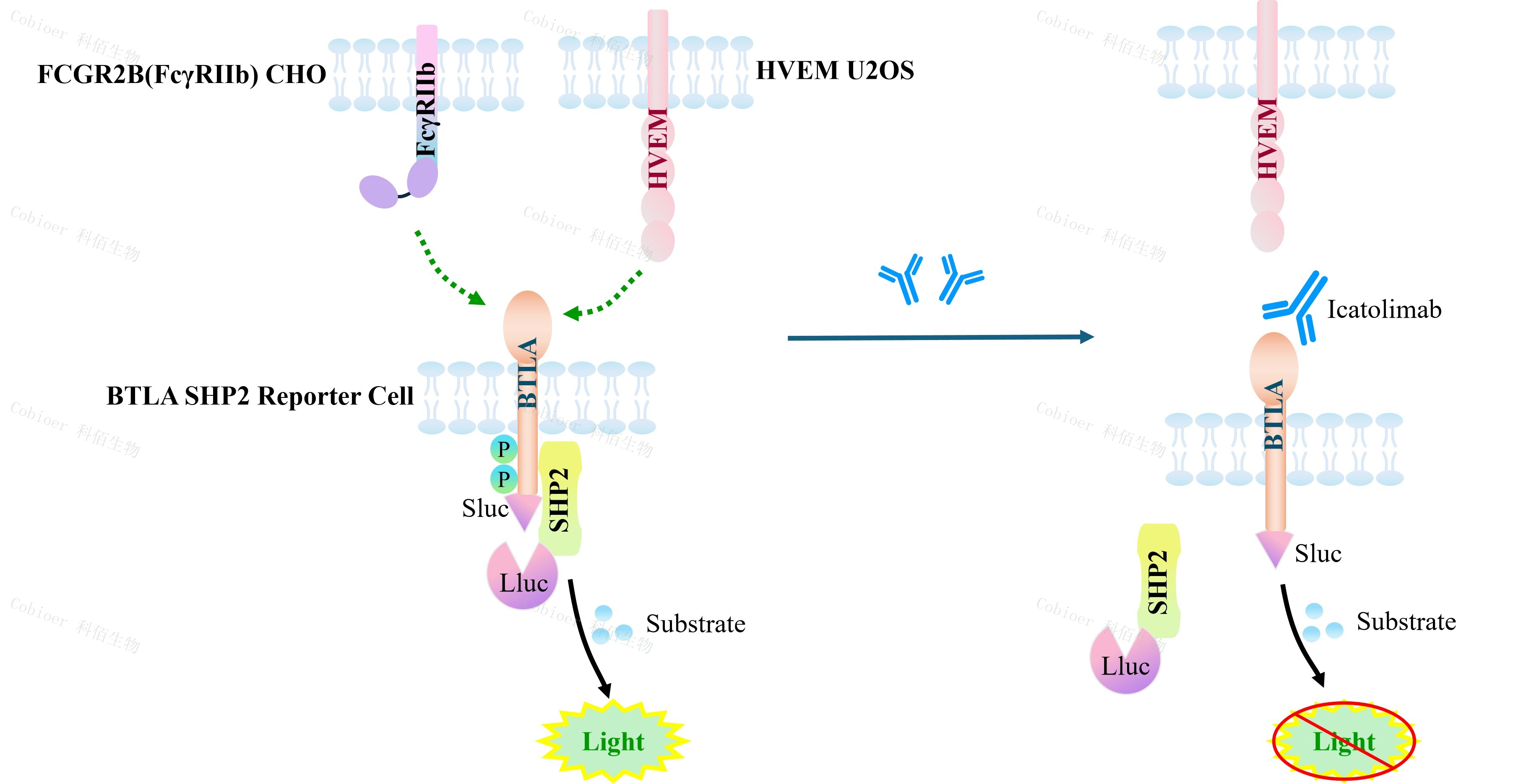 BTLA SHP2 Reporter Cell 報告基因藥靶模型很好的模擬了體內 BTLA/SHP2 的信號轉導過(guò)程,原理見(jiàn)下圖所示。![]() Figure 1. BTLA SHP2 Reporter Cell 細胞模型原理圖 |