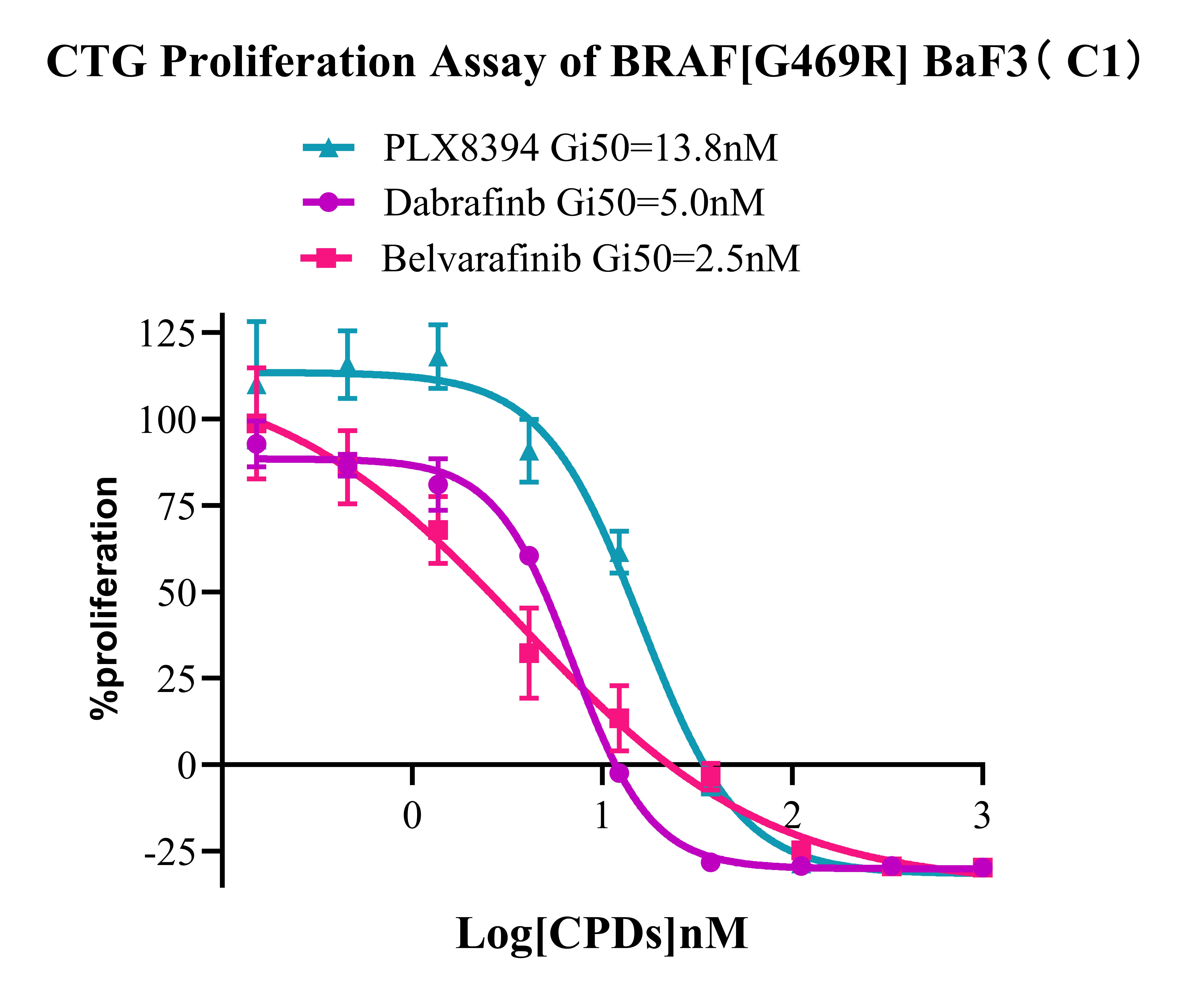 3. Anti-proliferation assay Figure 4. CTG proliferation Assay of BRAF [G469R] BaF3 (C1). |