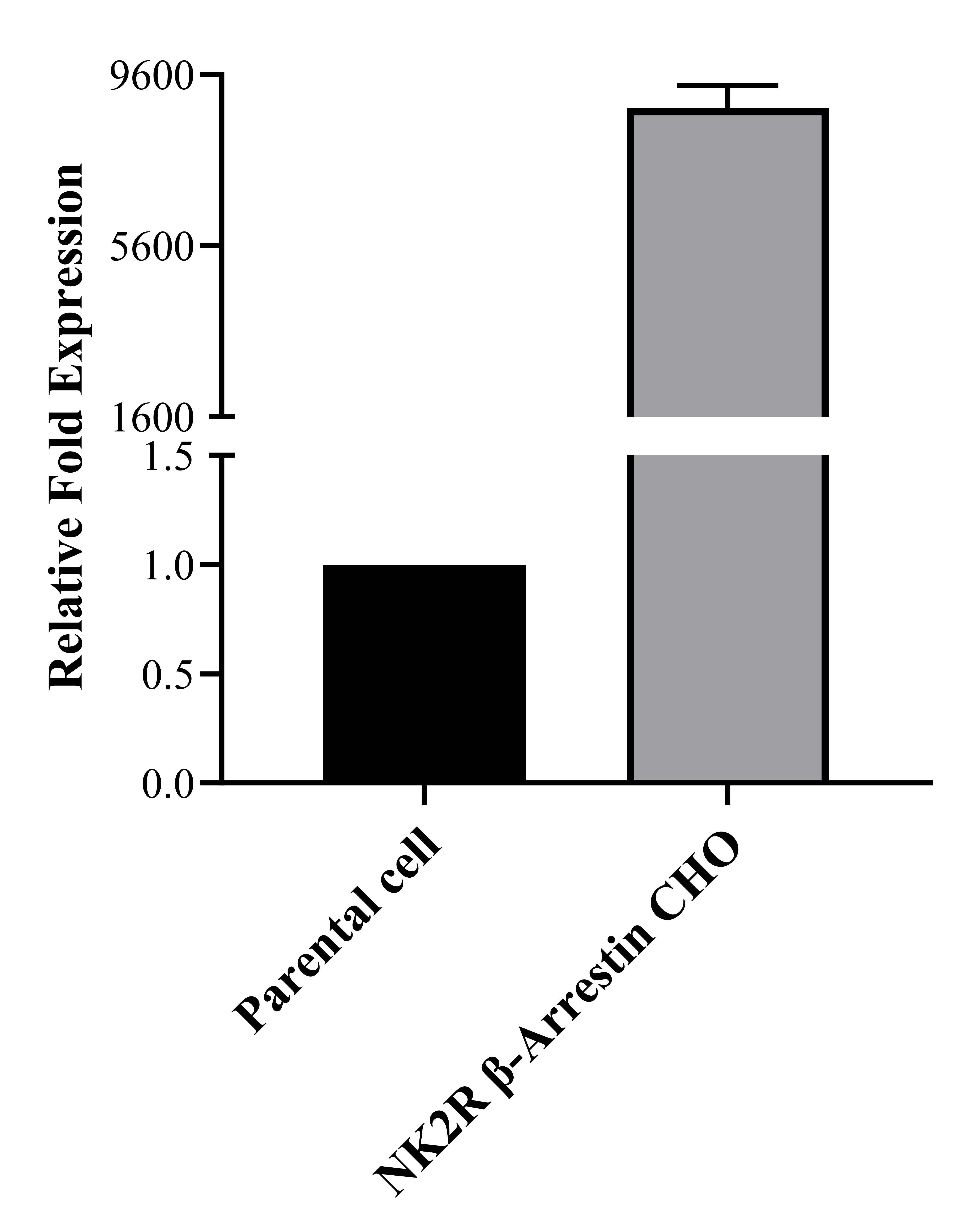 NK2R β-Arrestin CHO 報告基因藥靶模型很好的模擬了體內 NK2R/β-Arrestin 的信號轉 導過(guò)程,原理見(jiàn)下圖所示。當缺乏配體刺激時(shí),β-Arrestin 不與 NK2R 結合,融合β-Arrestin 的熒光素酶處于失活構象,當 NK2R 遭遇配體刺激時(shí),融合熒光素酶報告基因的β-Arrestin 被招募,使熒光素酶報告基因處于激活狀態(tài),加入其底物后發(fā)光信號增強。