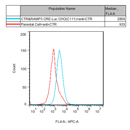 CTR&RAMP3 CRE-Luc CHO 報告基因藥靶模型很好的模擬了體內 CTR&RAMP3 的信 號轉導過(guò)程,原理見(jiàn)下圖所示。![]() Figure 1. CTR&RAMP3 CRE-Luc CHO 細胞模型原理圖 |