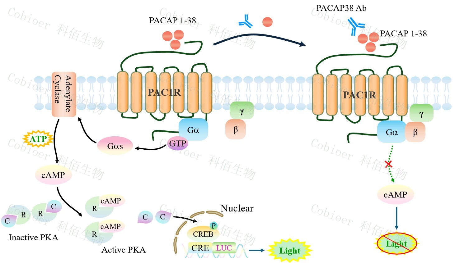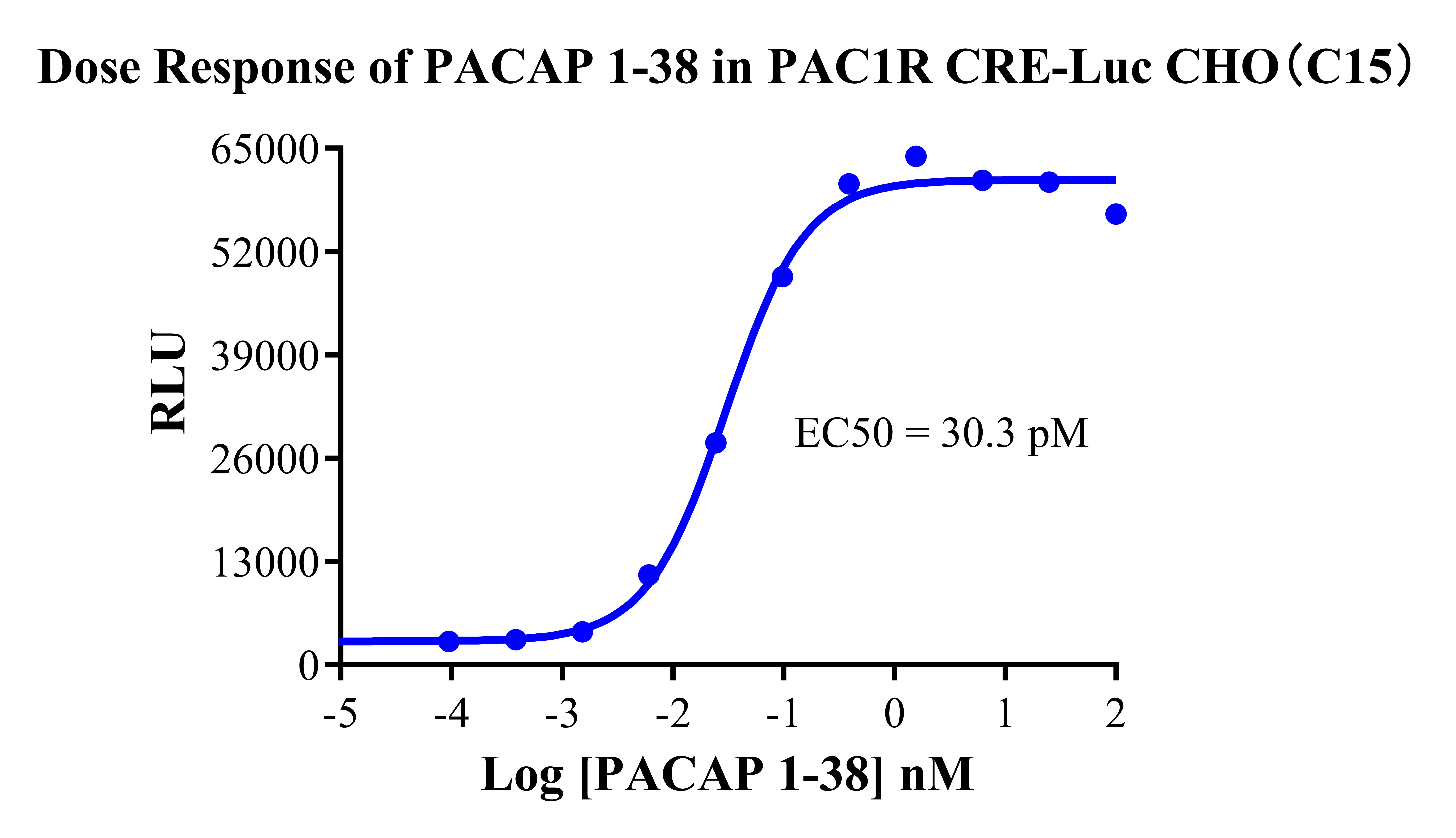 PAC1R CRE-Luc CHO 報告基因藥靶模型很好的模擬了體內 PAC1R 的信號轉導過(guò)程, 原理見(jiàn)下圖所示。![]() Figure 1. PAC1R CRE-Luc CHO 細胞模型原理圖 |