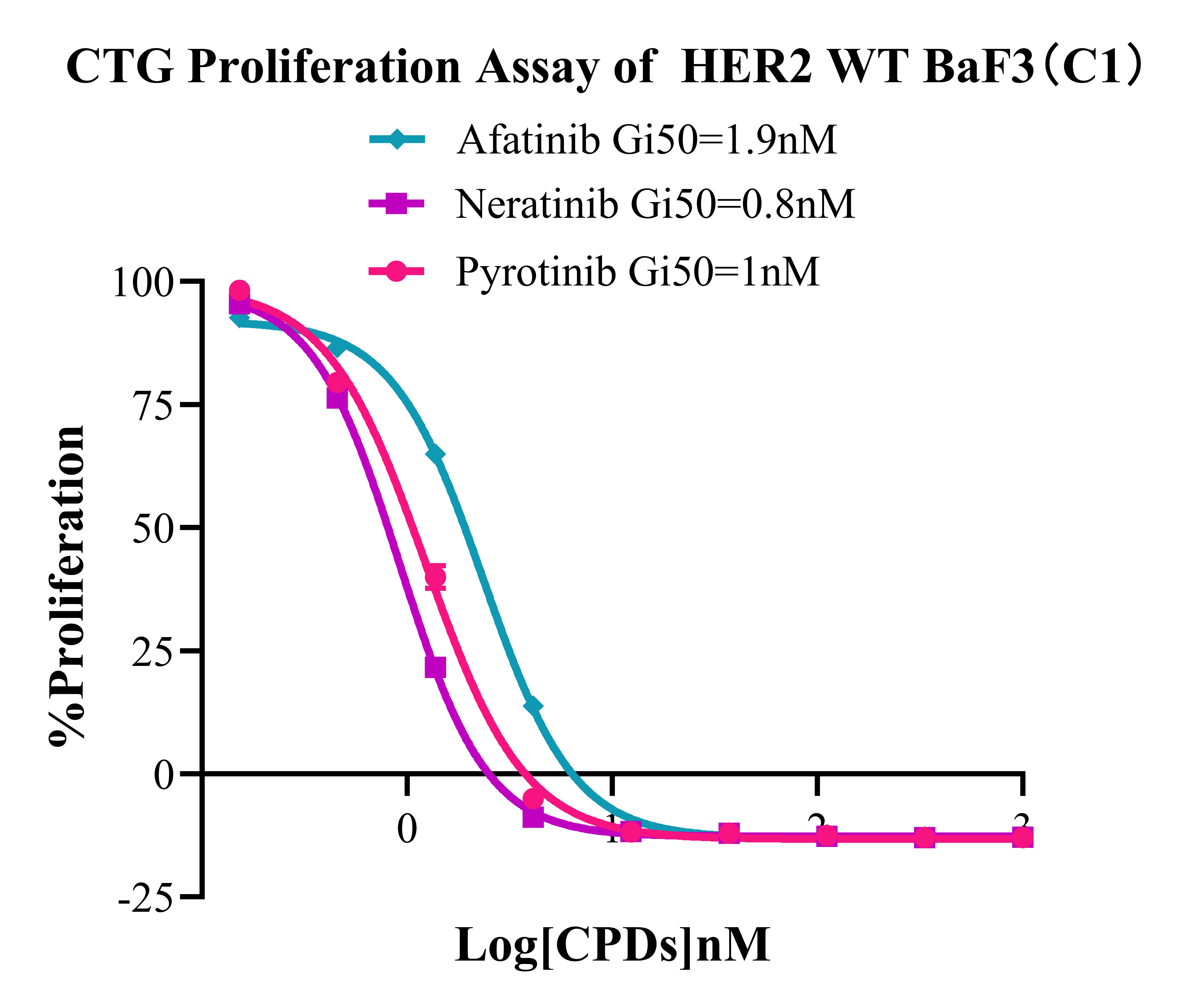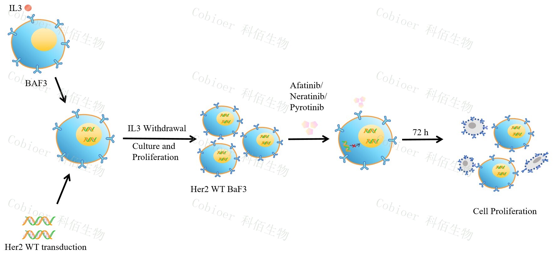 HER2 WT BaF3 藥靶細胞,通過(guò)轉導 Her2 基因到 BaF3 細胞系中,穩定 表達人突變形態(tài)下的 Her2 WT 基因。