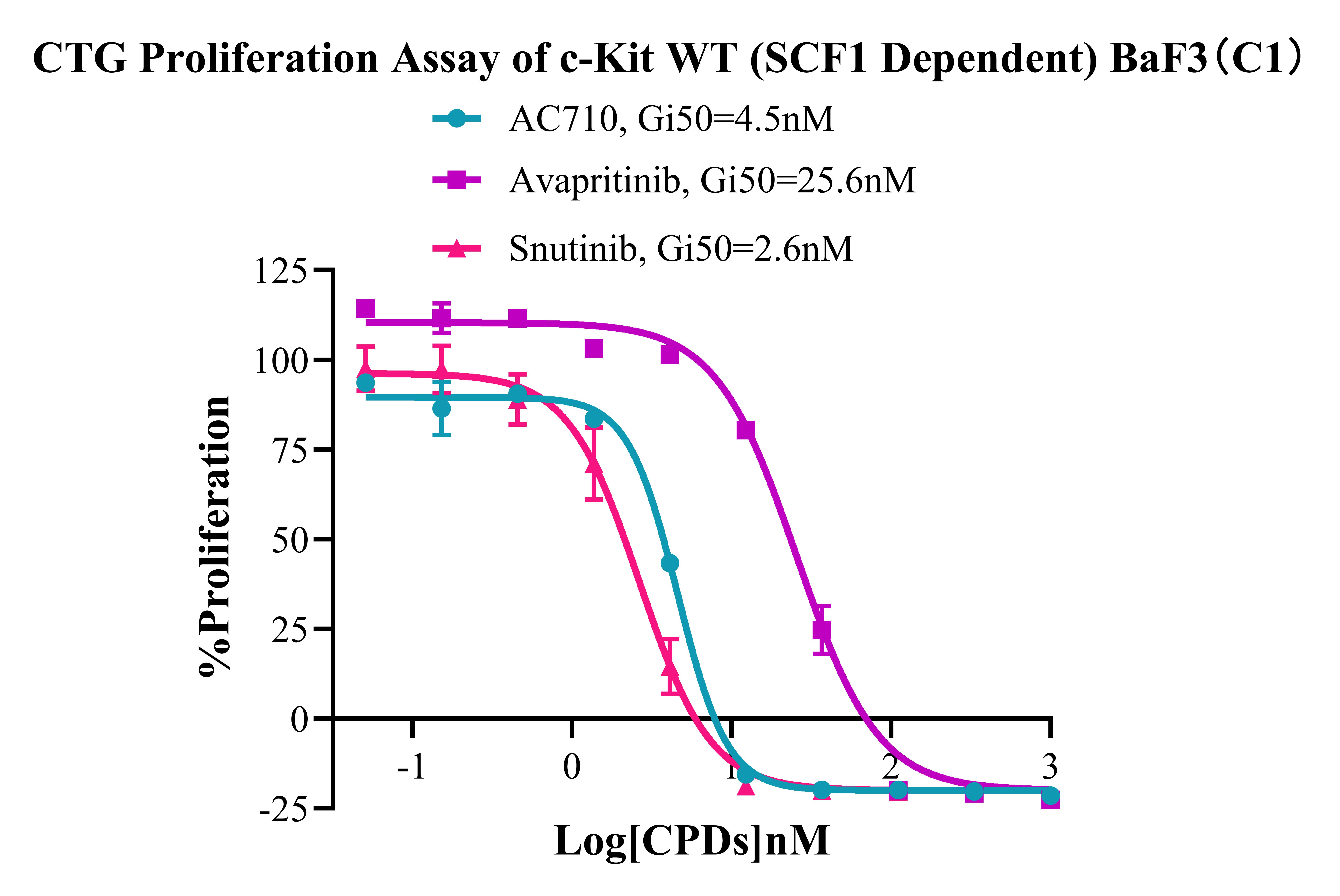 Figure 3. CTG Proliferation Assay of c-Kit WT (SCF1 Dependent) BaF3(C1). |