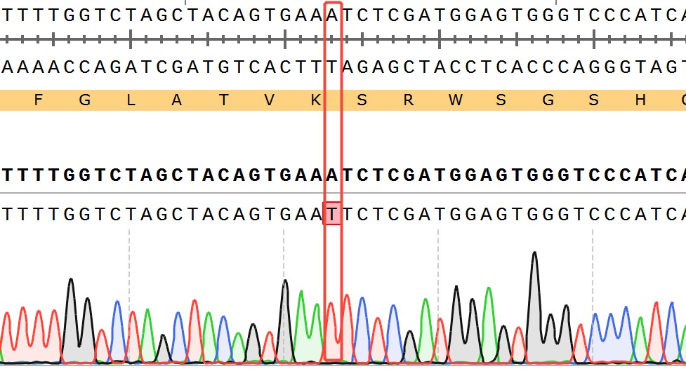 2. Sanger of BRAF K601N/BaF3 Figure 3. Sanger of BRAF K601N/BaF3 |