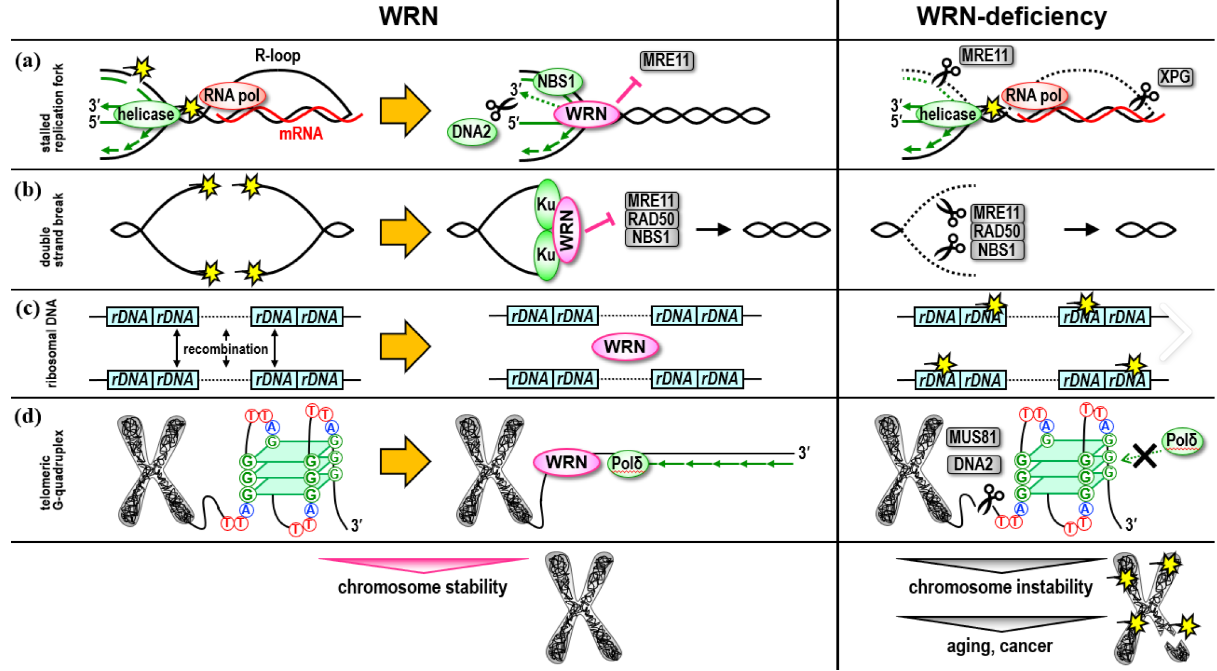 WRN(Werner Helicase)是一種具有解旋酶和核酸外切酶活性的多功能酶,在維持基因組穩定性至關(guān)重要的各種細胞過(guò)程中發(fā)揮作用,包括 DNA 復制、轉錄、DNA 修復和端粒維護。