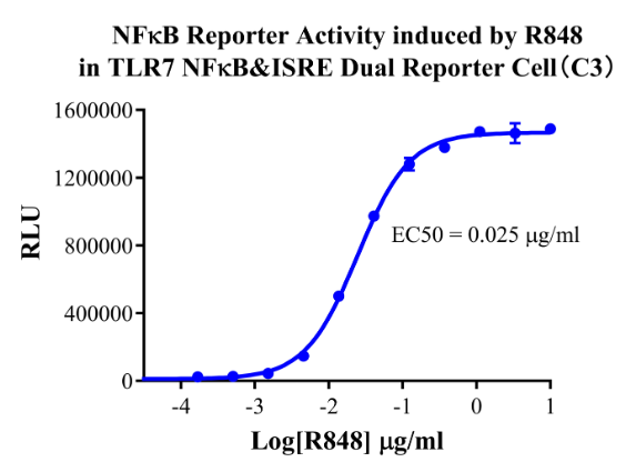 Figure 7.NFκB Reporter Activity induced by R848 in TLR7 NFκB&ISRE Dual Reporter Cell(C3).